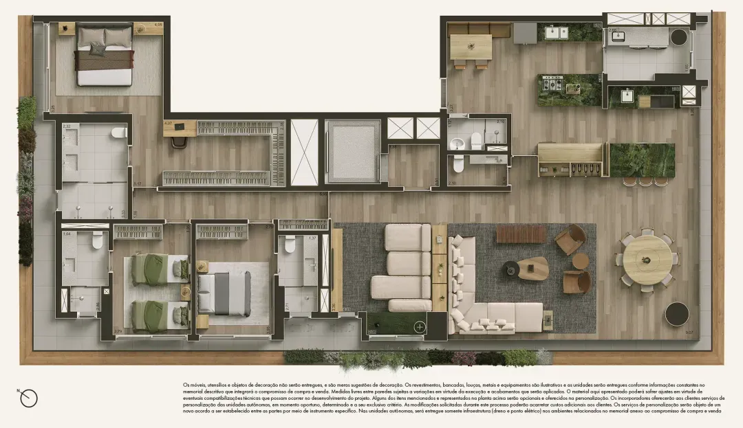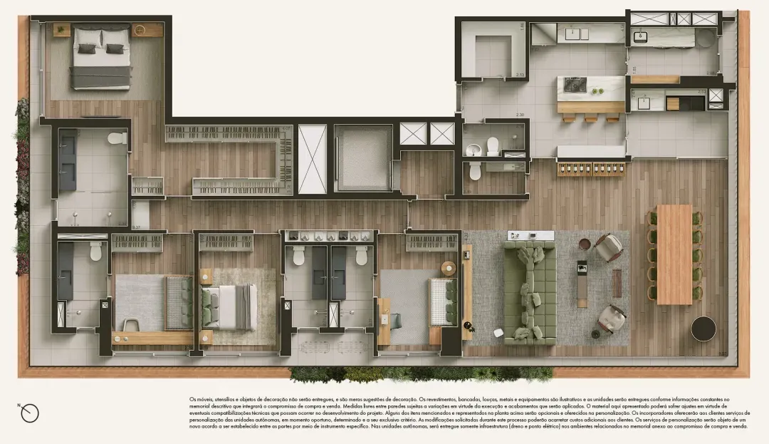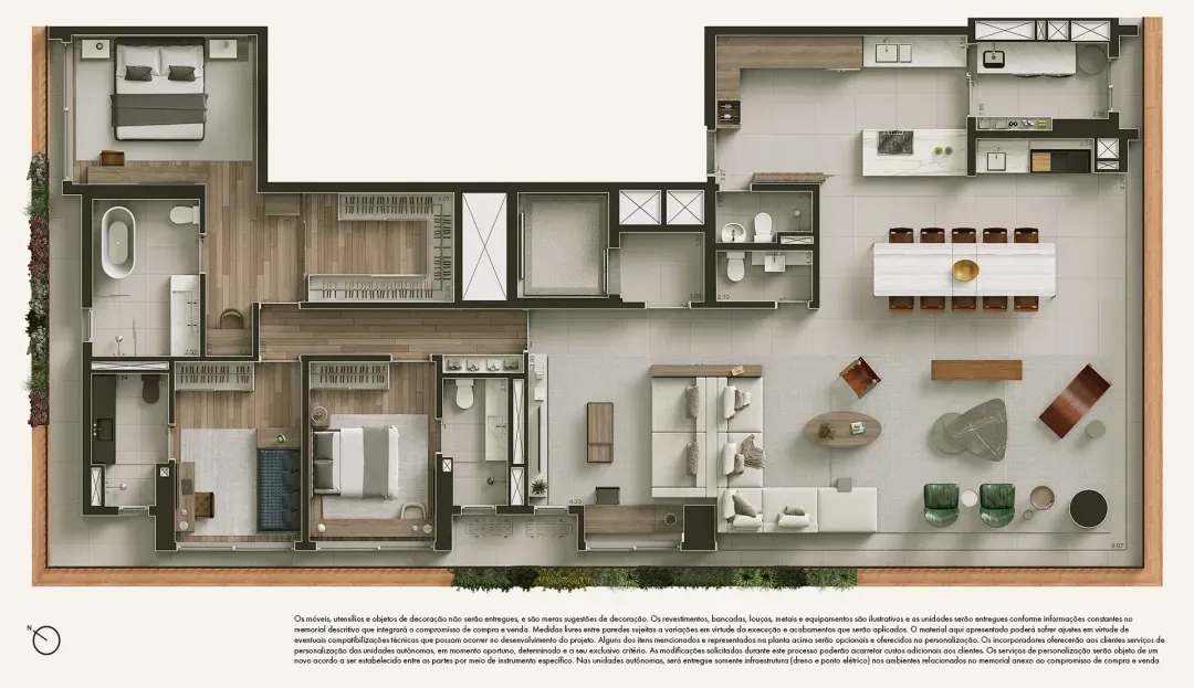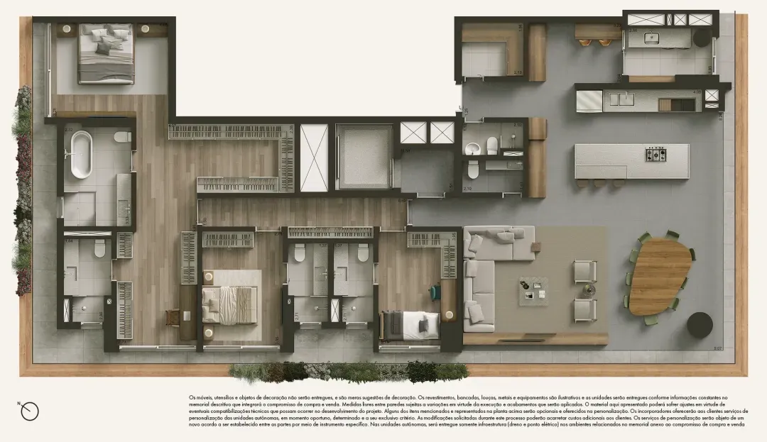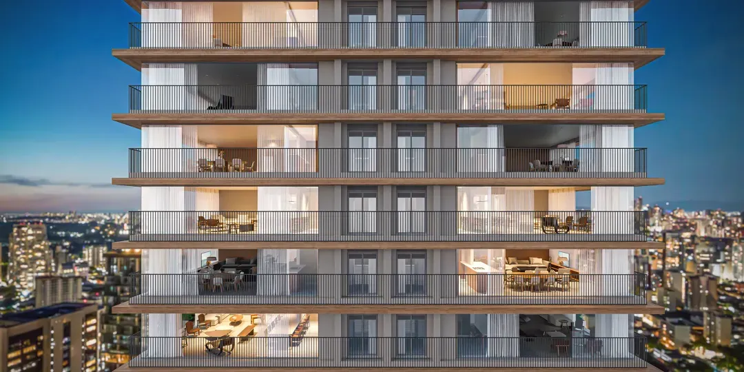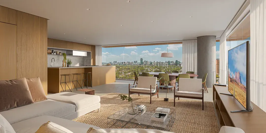 Todas as unidades com vista frontal e livre para o verde dos Jardins.